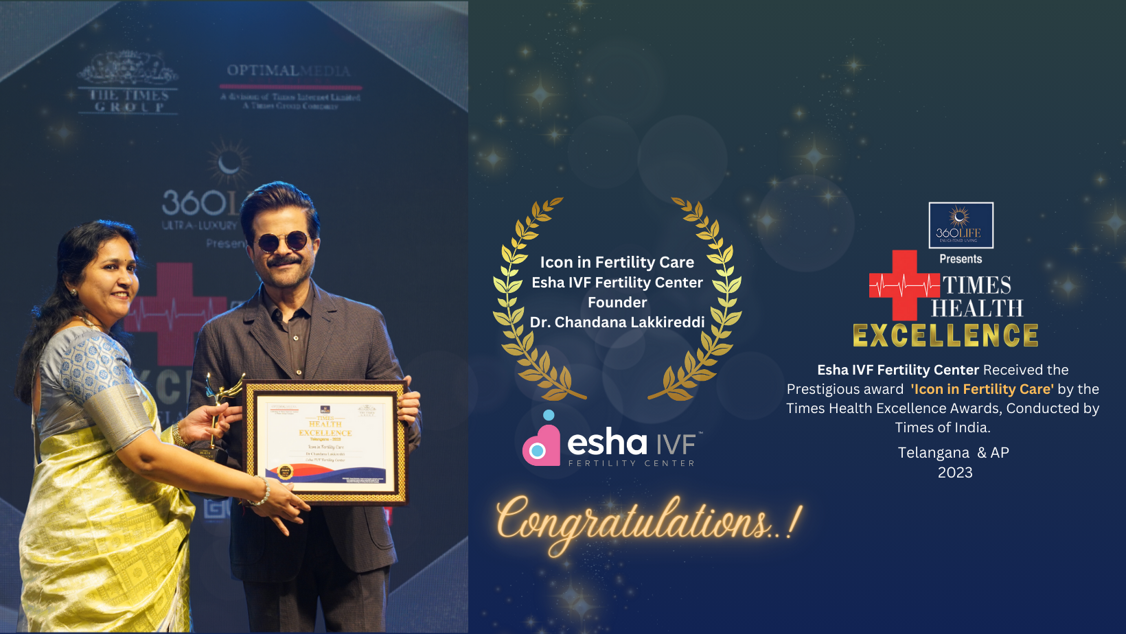Awarded the Times Health Excellence title of “Icon in Fertility Care” for AP and Telangana in 2023.